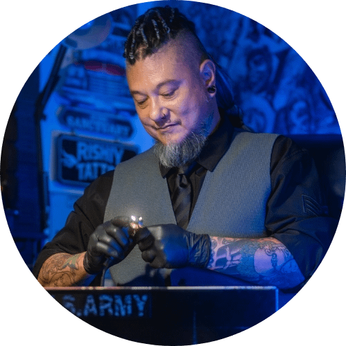 Você encontrará profissionais com 9 anos de experiência, dedicados a transformar suas ideias em arte duradoura. Nosso compromisso com o profissionalismo e a segurança é a base do nosso trabalho. Cada um dos nossos tatuadores é especializado em diversos estilos e técnicas, trazendo uma variedade de abordagens artísticas para atender às suas preferências. Com uma paixão pela criatividade e um olhar afiado para os detalhes, eles estão prontos para criar tatuagens únicas e personalizadas que refletem sua individualidade.